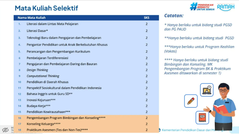 DAFTAR MATA KULIAH PPG CALON GURU