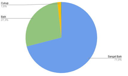 Aspek daya tanggap juga memperoleh hasil yang sangat positif, dengan 69,66% mahasiswa menyatakan sangat puas dan 28,56% puas. Hal ini mencerminkan komitmen sivitas akademika dalam memberikan bantuan dan layanan secara cepat kepada mahasiswa. Ke depan, UPPS/PS akan melakukan optimalisasi layanan berbasis daring dan peningkatan kompetensi SDM layanan guna meningkatkan kecepatan dan efektivitas respons.