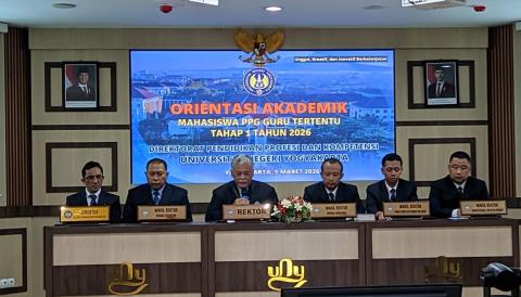 Yogyakarta – Universitas Negeri Yogyakarta (UNY) melalui Direktorat Pendidikan Profesi dan Kompetensi (DPPK) menyelenggarakan Orientasi Akademik Mahasiswa Pendidikan Profesi Guru (PPG) bagi Guru Tertentu Tahap 1 Tahun 2026 pada Kamis, 5 Maret 2026 di Ruang Sidang Utama DPPK UNY. Kegiatan ini menjadi langkah awal bagi para peserta untuk memasuki rangkaian pendidikan profesi guru sebagai upaya meningkatkan kompetensi dan profesionalitas pendidik yang adaptif terhadap dinamika pembelajaran di era modern.